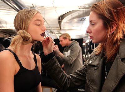 To get the Night Shade look, Sarah Lucero for stila Cosmetics applied rich Aubergine lips paired with accentuated dark brows, flawless finish natural skin and eyes. She also used Beauty Blender's new liner.designer to guide lip liner. The three different edges is also great for creating multiple eye looks.